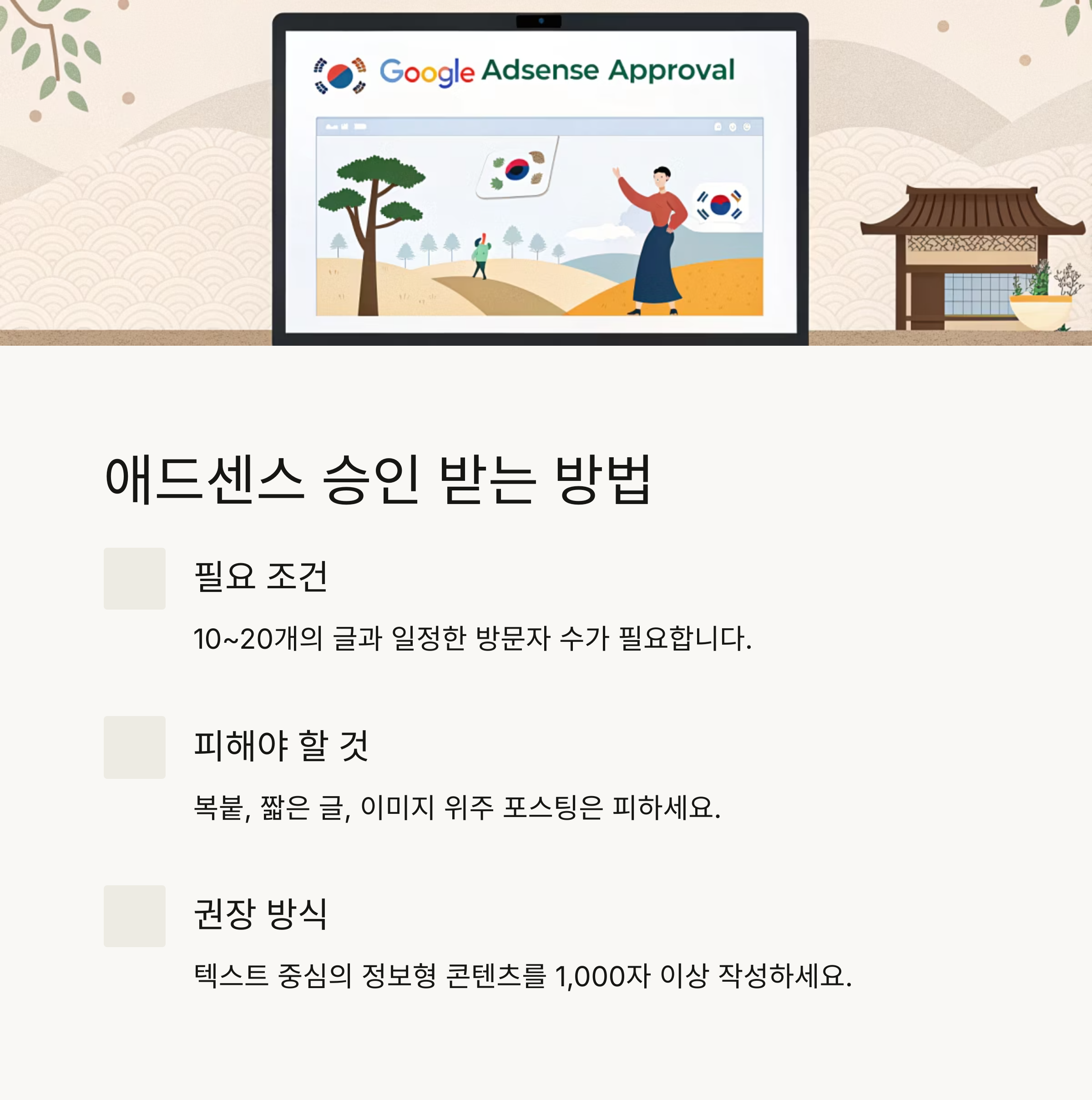하지만 복붙, 짧은 글, 이미지 위주의 포스팅은 승인 확률이 낮습니다.