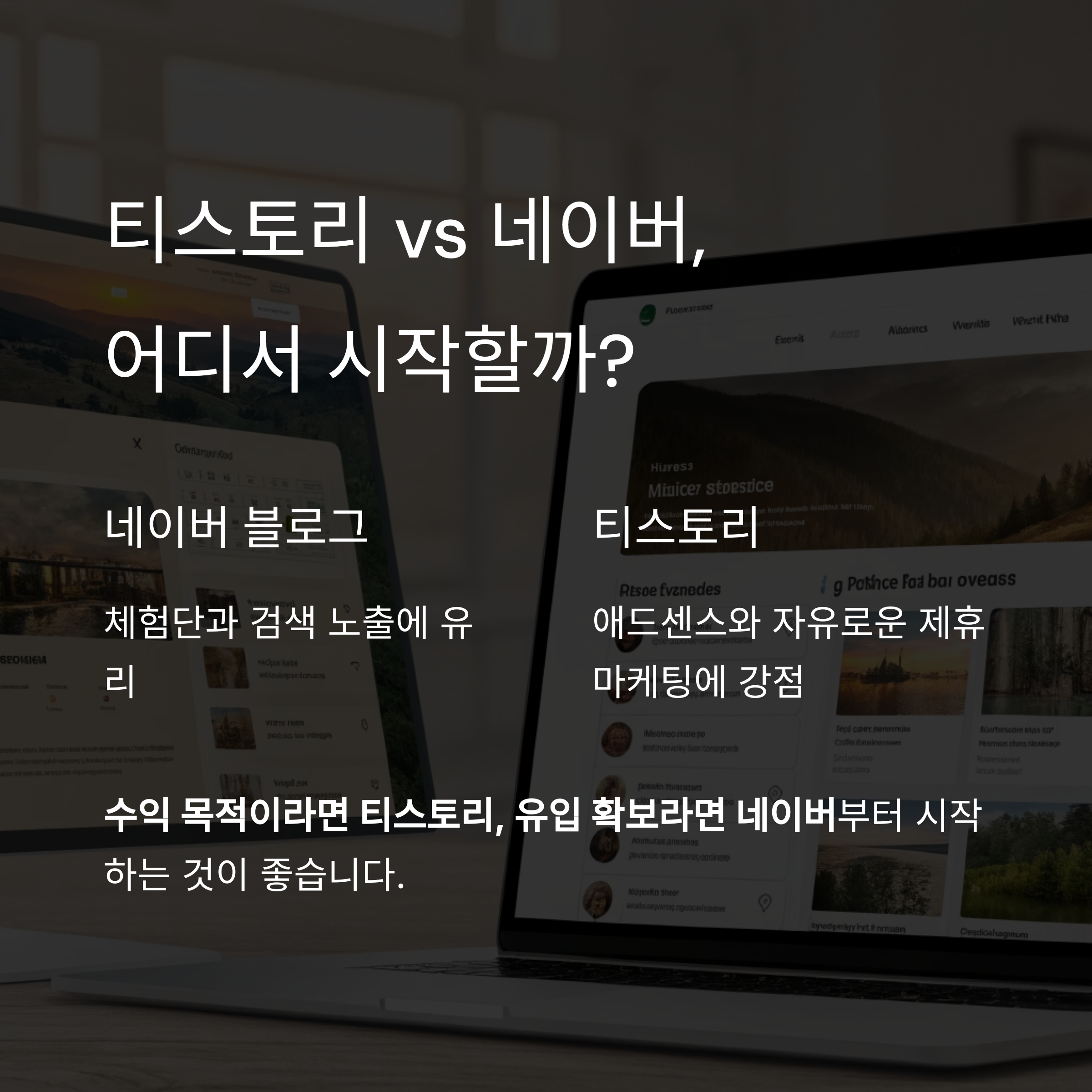 수익 목적이라면 티스토리부터, 유입 확보라면 네이버부터 시작하는 전략이 좋습니다.