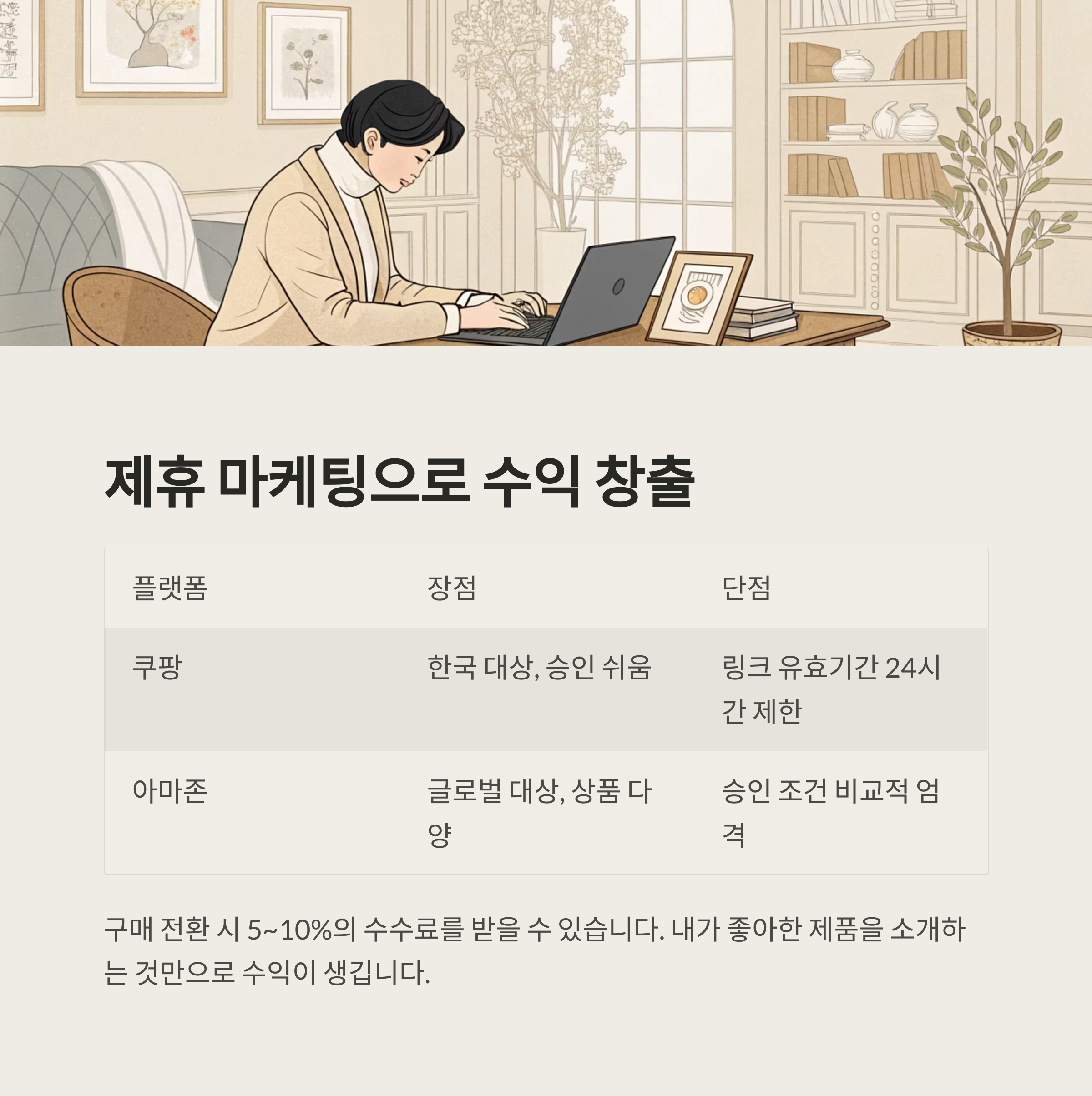 구매 전환 시 5~10%의 수수료를 받을 수 있습니다.