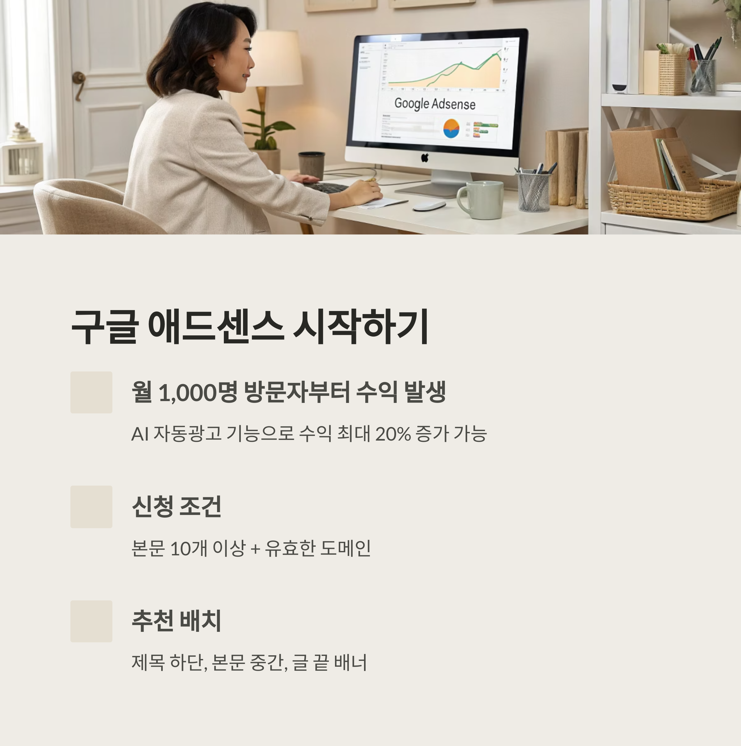 사이트 구조에 맞는 광고 배치 최적화 → 수익 최대 20% 증가 효과를 기대할 수 있습니다.