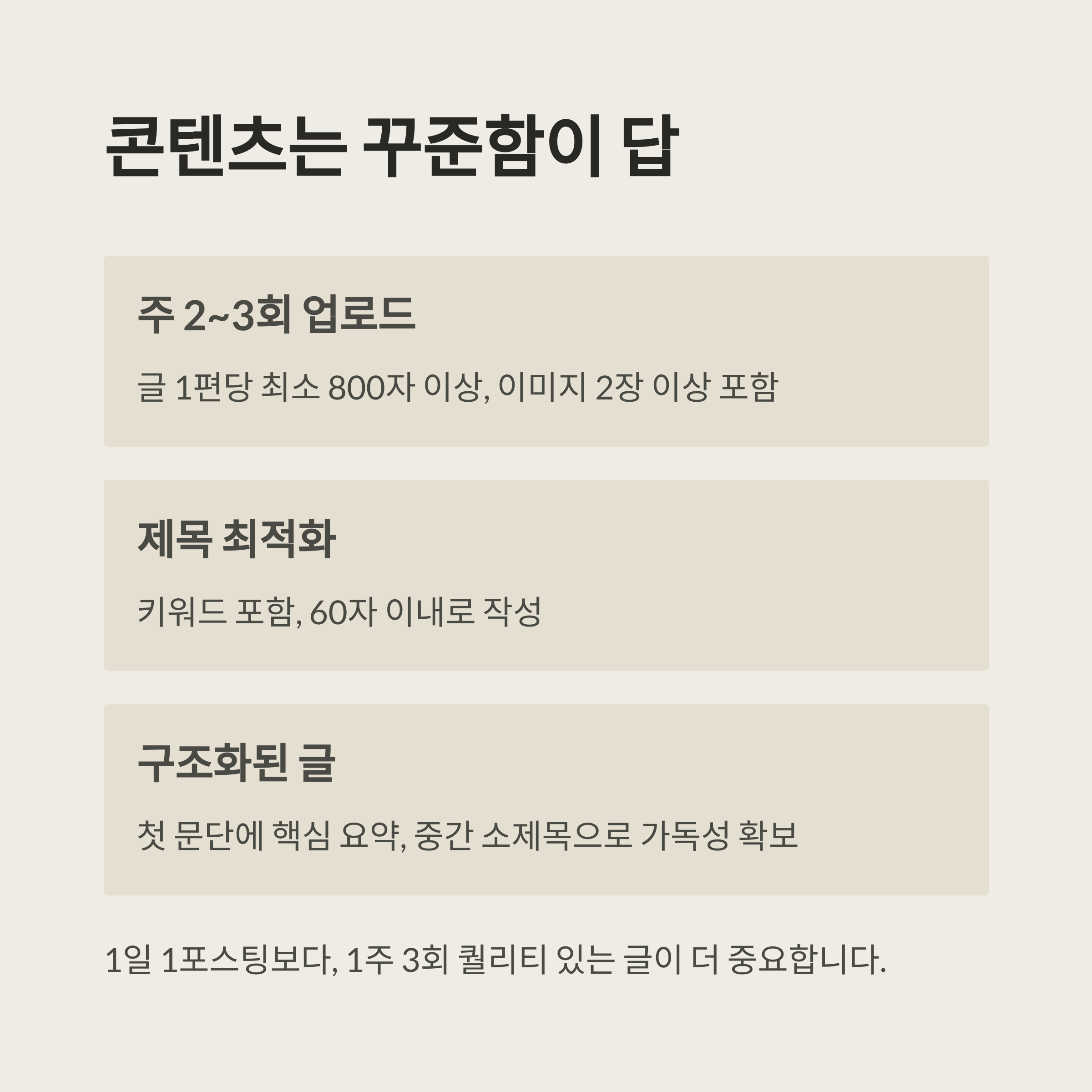 “1일 1 포스팅보다, 1주 3회 퀄리티 있는 글이 더 중요합니다.”